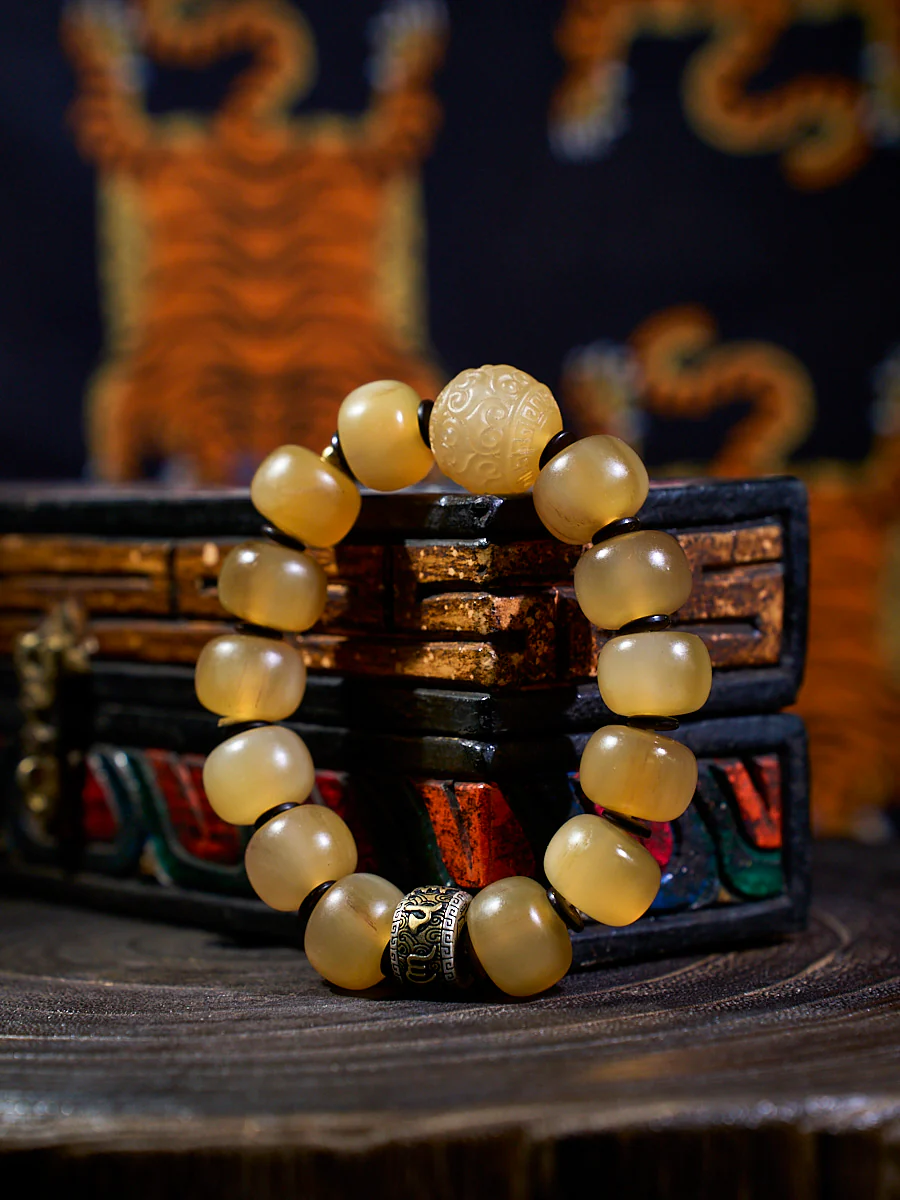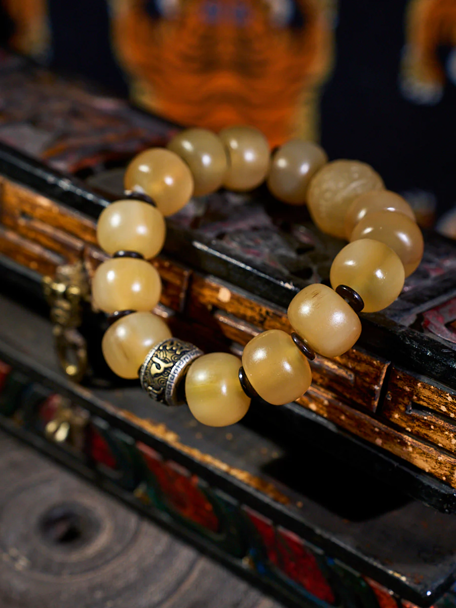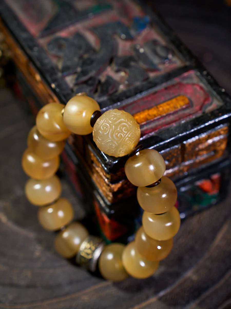 The Courageous Spirit Bracelet by Kailash Energy is crafted from authentic yak horn beads, symbolizing resilience and steadfast courage. Known for its protective and grounding qualities, yak horn is revered for fostering inner strength and balance, making this bracelet a powerful talisman for those facing life’s challenges. Each bead is meticulously polished, highlighting the natural beauty of the horn and adding an earthy elegance to your style.