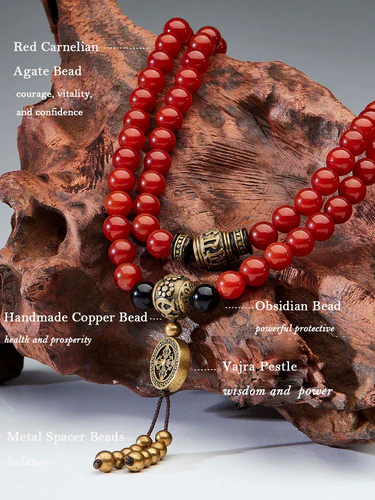Material:Red Carnelian Agate Bead, Obsidian Bead and Handmade Copper Bead